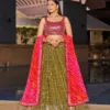 - This semi-stitched lehenga is its customization option, which allows you to adjust it up to 42 inches for a perfect fit. Additionally, the set includes 1 meter of unstitched choli material and a 2.30-meter dupatta, giving you the flexibility to style the outfit to your liking. Whether it’s for a cocktail party, reception, engagement, or wedding, this designer lehenga choli is sure to make you stand out.