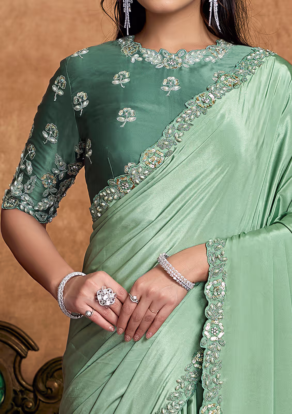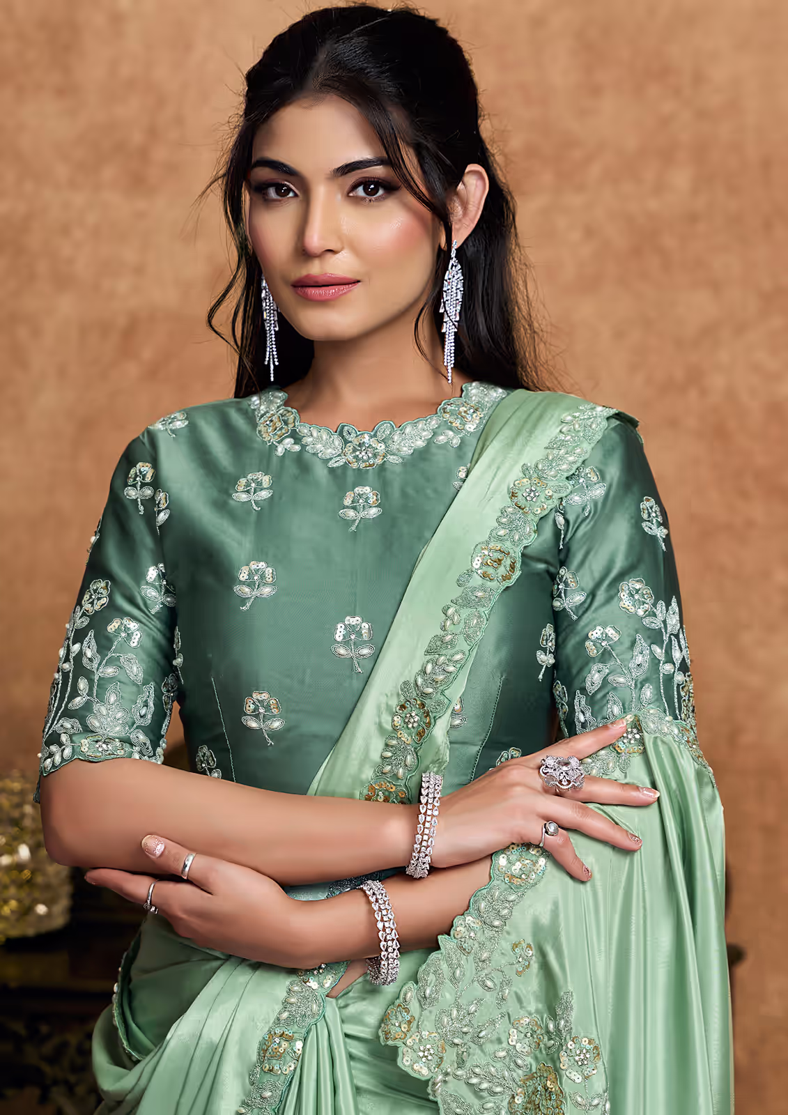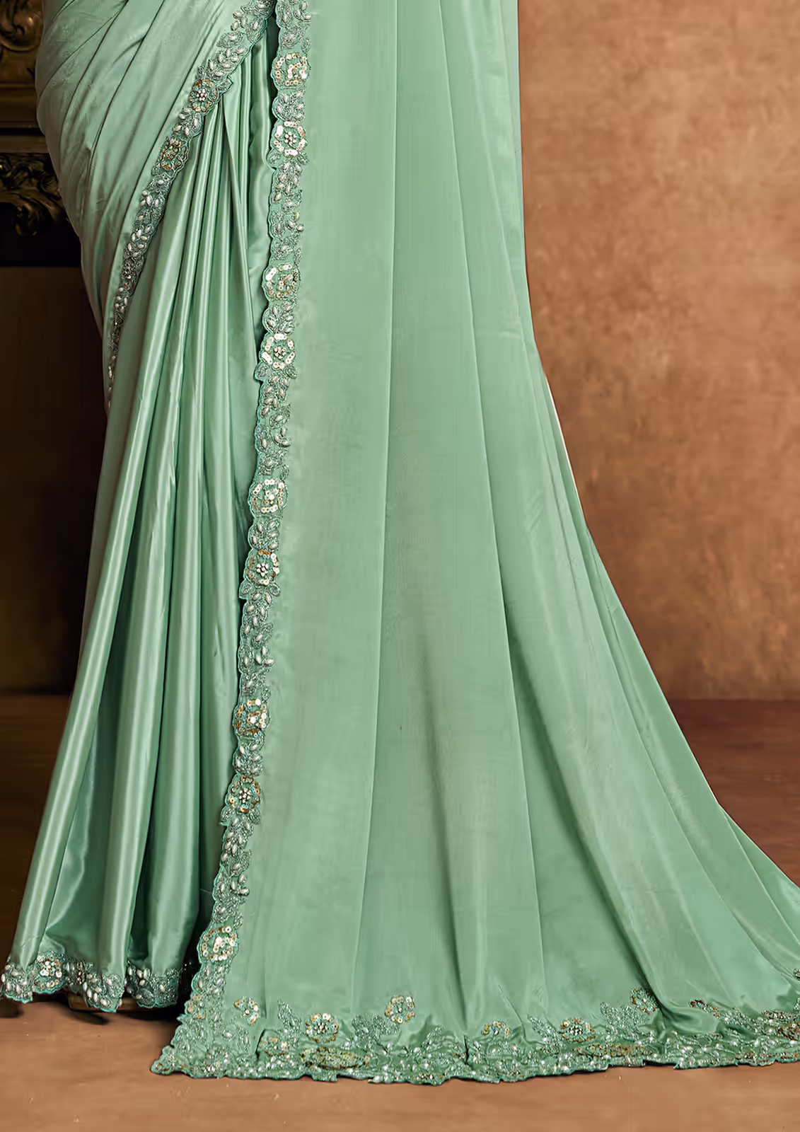 Pure Crepe Satin Pista Green S...